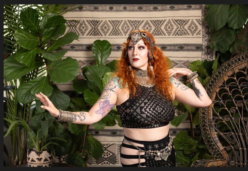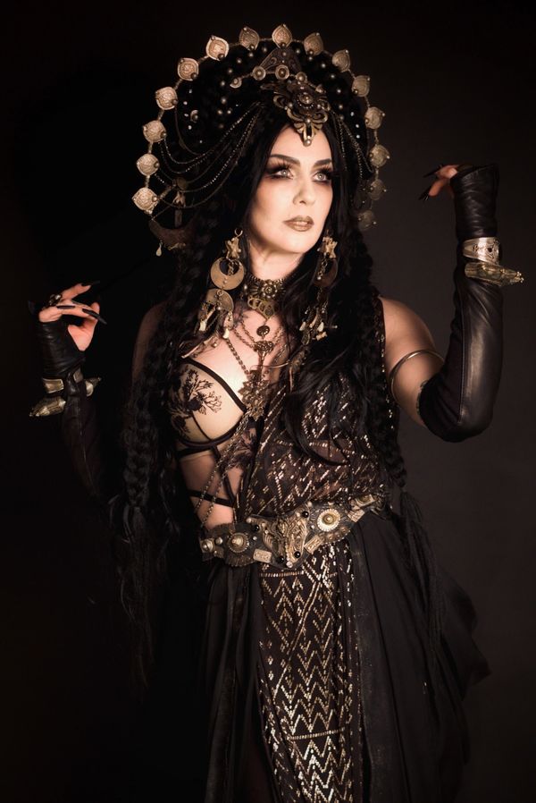 Shauntel, an enchantress of motion, has spent over fifteen years casting spells through the sacred art of fusion belly dance. Her performances are living rites, where every serpentine gesture becomes an invocation and every breath a whispered charm. Cloaked in the moonlit glamour of Old Hollywood’s shadowed past and steeped in the arcane wisdom of global dance traditions, she conjures visions that shimmer between dream and waking. A founding ember of Sekhmet Dance Company and a devoted sister within the Seraphim Arabesque Ensemble—a transcultural coven of storytellers—Shauntel calls forth beauty and magic from the hidden corners of the earth. She dances as though guided by starlight, flame, and the eternal pulse of the unseen to be with you this evening.